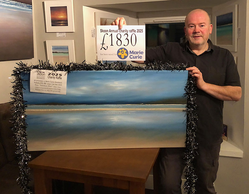 Thank you to everyone who support this year’s raffle and a total of £1830 has been raised and is on it’s way to Marie Curie (Scotland). The prize painting (below) will be hanging up in it’s new home before Christmas and details of our 2026 raffle will be posted here in the new year.