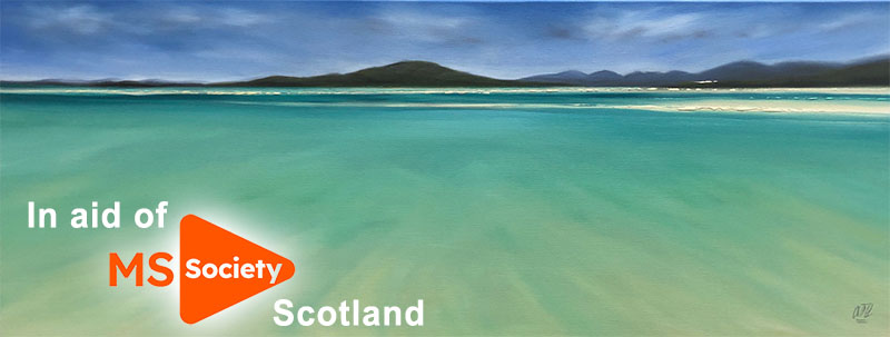 Tickets will be available for this years raffle from the 24th March and the 1m x 40cm prize painting (below) is available to view in the gallery now. All proceeds from ticket sales this year will be donated to the MS Society Scotland.